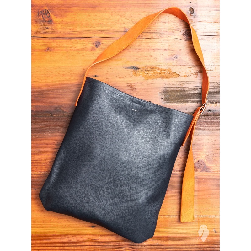 This large satchel from Hender Schemeis crafted usinga soft pebbled leather body and full-grain leather strap completed with tonal stitching.Handcrafted in Japan using naturally dyed leathers, thissatchel features an inside pocket compartment, magnetic snap closure,and adjustable strap.