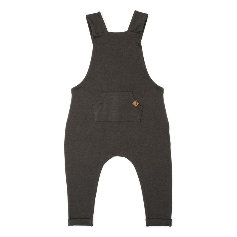 Organic overalls made from the softest organic cotton with fold over cuffs and kangaroo pocket for a playful look. Slightly tapered legs. Adjustable straps.