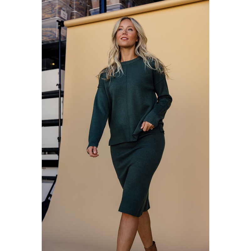 The Out Of My League Sweater features side slits, soft and stretchy material, and a boxy drop-shoulder silhouette. Pair this sweater with the matching skirt, or throw it on with a pair of dark wash jeans and kick off Fall in style!soft and stretchy// paire