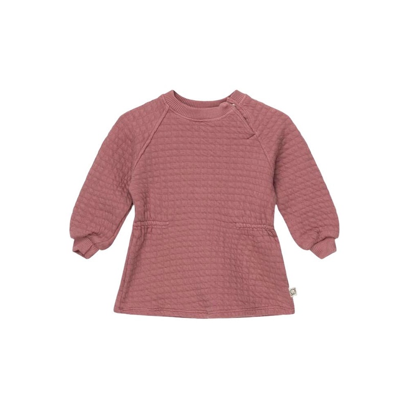 This baby dress features a crew neck, raglan long sleeves, rib at cuffs and neckline, a straight hem, and elastic details at the waistline.