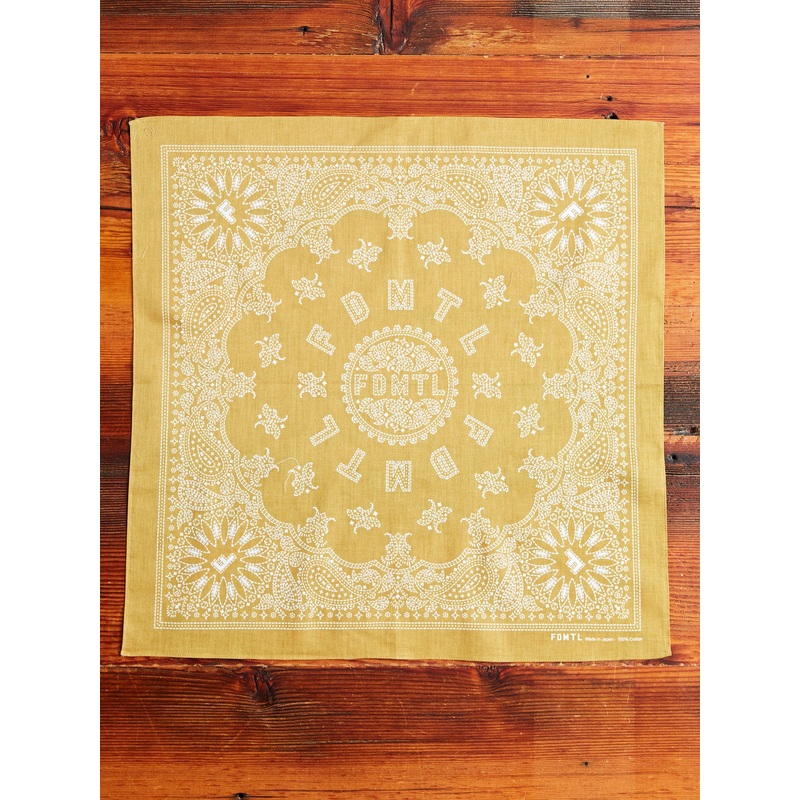 • This classic bandana from FDMTL is made from a pre-washed cotton fabric with a custom discharge print. The bandana features apaisley motif with the FDTML logo and a variety of patterns throughout.
