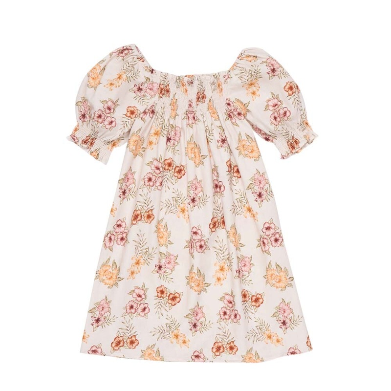 Rescues are brand new items with tags, sourced from aging collections and offered to you at a discount. Most overstock & retail returns in America are thrown away or kept in storage – by rerouting this inventory to Manymoons, with your help we are able to keep these products utilized and out of landfills. Dress in Cotton Linen with all over print. Neckline with smock panel, short balloon sleeve with smock, evas bottom over the knee.