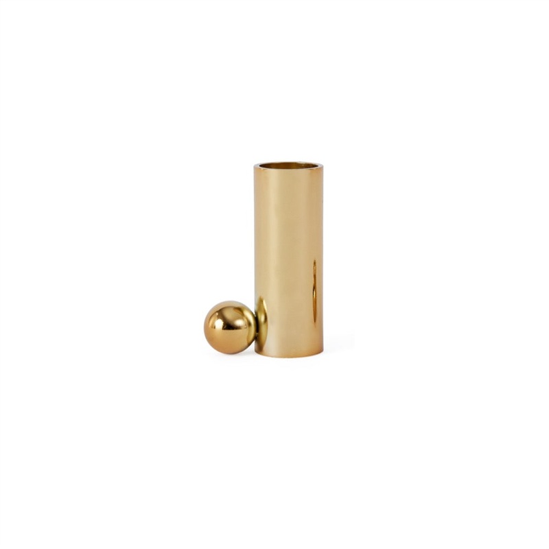 This brass candlestick from the Palloa series is elegant and stylish - it will become a favorite item in the decor.There are several different sizes of candlesticks in the Palloa series.Color: BrassQuality: 100% Metal, Brass PlatedDimensions: 2" x 1" x 3"