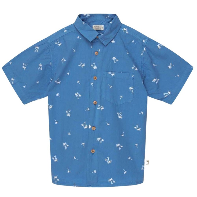 Rescues are brand new items with tags, sourced from aging collections and offered to you at a discount. Most overstock & retail returns in America are thrown away or kept in storage – by rerouting this inventory to Manymoons, with your help we are able to keep these products utilized and out of landfills. This organic cotton shirt has a spread collar, short sleeves, a button-down closure, and a curved hem. Designed in an all-over palms print.