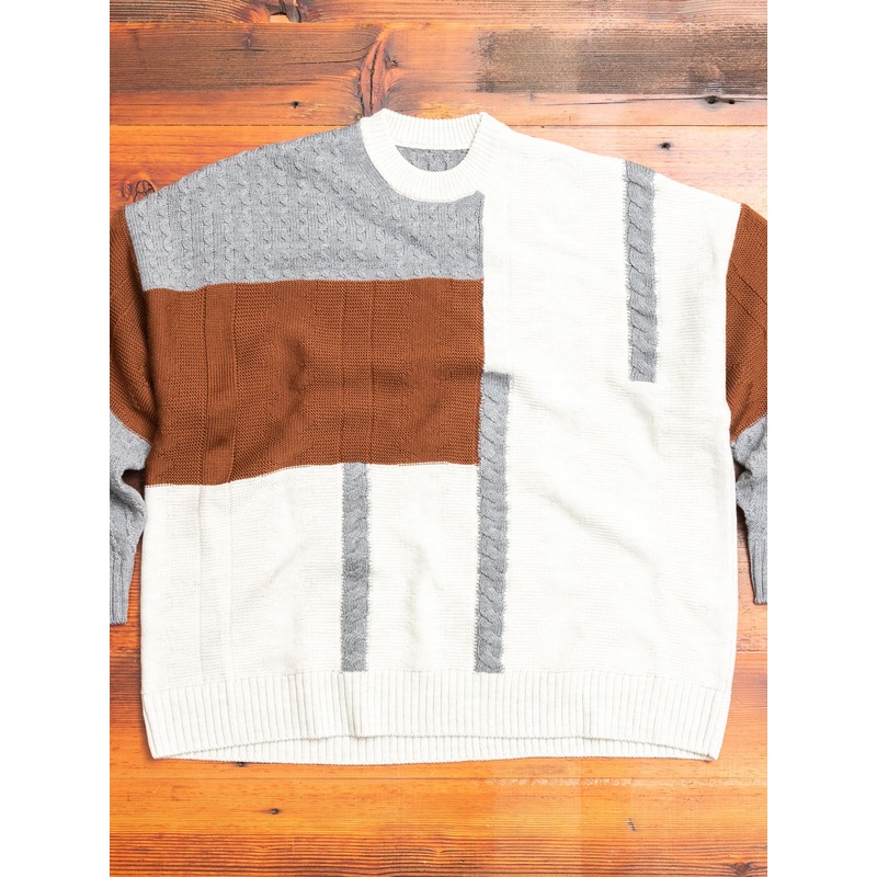 Patchwork Knit Crewneck Sweater in Brown