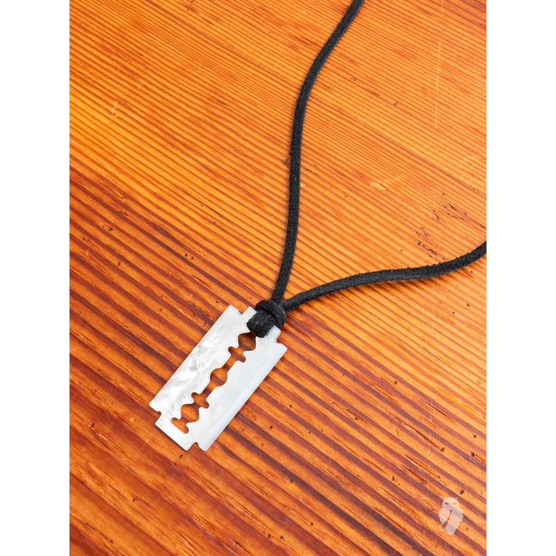 DetailsSizingBrand InfoThepearlescent pendant of this necklace from Our Legacy is cut in the shape of a razor blade and features a washed suede string.Expertly crafted in Italy,this piece blurs the line between grunge and luxury.High quality pearlescent pe