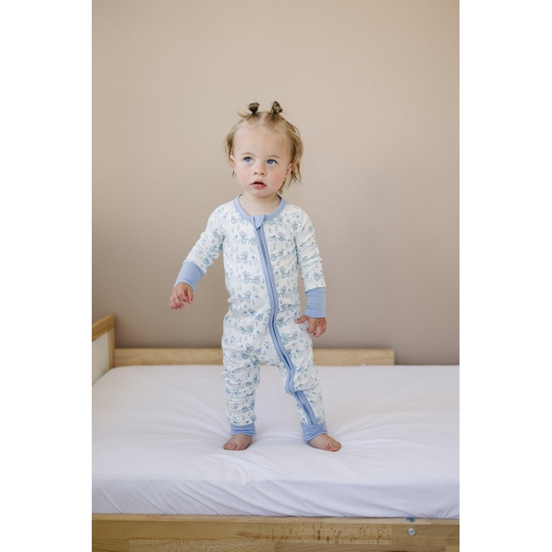 Discover comfort and style with our Bamboo Zippy Romper. Made from a luxurious blend of 95% bamboo viscose and 5% spandex, this romper provides a soft touch at 220 gsm. Featuring foldover cuffs and feet for all sizes, with non-slip soles for sizes 9-12 mon