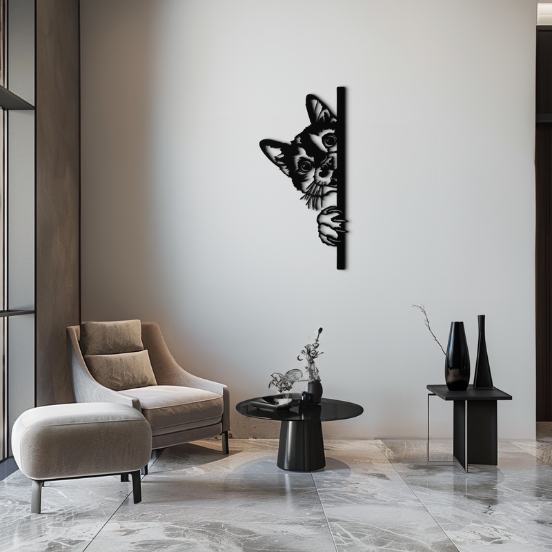 Add a touch of playfulness and charm to your space with this adorable Peeking Cat Metal Wall Art. Featuring a curious kitten peeking from behind a wall, this fun and stylish piece is perfect for cat lovers and pet-friendly homes.
