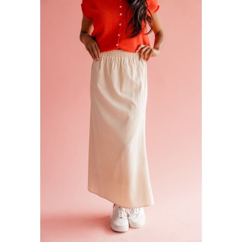 If you're looking to meet a perfect stranger, do it in this skirt! Flowy, flattering, and effortlessly cuteit's giving main character energy. Just add sneakers or sandals and you're ready, babe :)textured micro-ginghamelastic waistbandfully lined// paired