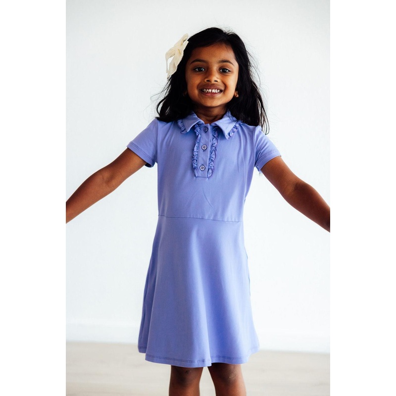Featuring a ruffled collar and button placket for a playful twist on the timeless polo look, this toddler and kids polo dress brings everyday ease with an elevated touch. The pull-on style makes for fuss-free dressing, while the twirl-worthy skirt ensures all-day comfort and fun.