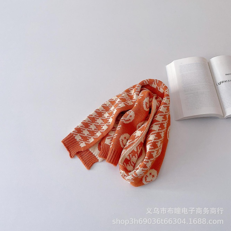 Personalized Children’s Soft Skin Friendly Knitting Diamond Lattice Stitching Smiley Face Warm Wool Scarf | Fruugo SG