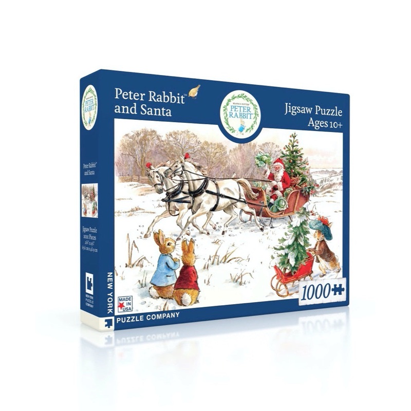 Celebrate the holiday season with a charming twist on a beloved classic in Peter Rabbit and Santa, a 1000 piece jigsaw puzzle inspired by Beatrix Potter’s enchanting world. In this delightful winter scene, Santa Claus rides in a horse-drawn sleigh through a snow-covered field, bringing festive cheerand a basket of cabbagesas gifts for Peter Rabbit and his woodland friends. As the friends prepare to take their Christmas tree home, the magical moment unfolds, blending holiday spirit with the timeless charm of Potter’s beloved characters. Perfect for families, fans of Beatrix Potter, and puzzle enthusiasts, this heartwarming puzzle captures the joy of the season and the coziness of woodland friendship. Piece together this whimsical holiday adventure, and enjoy a festive journey with Peter Rabbit and Santa, one snowy detail at a time!