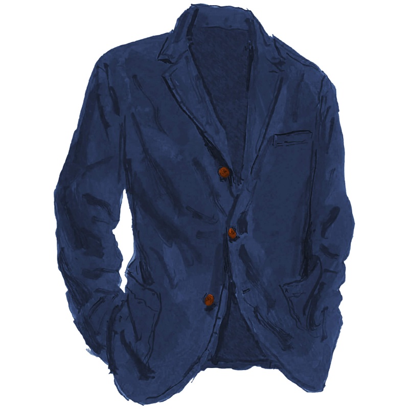 Pigment-Dyed Jacket (No. 5704). Has an aged, weathered look, with interesting faded seams and other nuances of color. Pure cotton, lined in satin. Three contrast brown corozo buttons. Soft shoulder pads. Three outer pockets, two inner pockets. Imported.