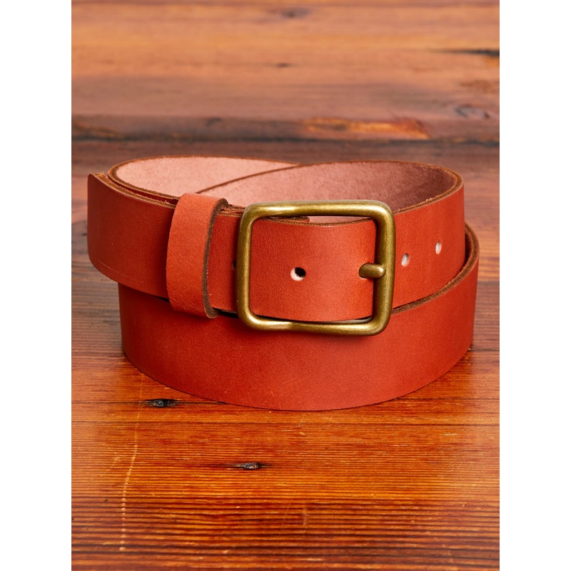 Crafted in Red Wing, Minnesota, the Pioneer Leather Belt uses leathers from the brand’s proprietary archives. Built with 8-9oz chrome tanned leather which has undergone a vegetable re-tannage for reinforcement, the belt features hand-burnished edges and a solid brassbuckle. This version of thePioneer belt uses Red Wing’s”Oro Russet” tannage, thesame classicleatherseen on the brand’s heritage boots.