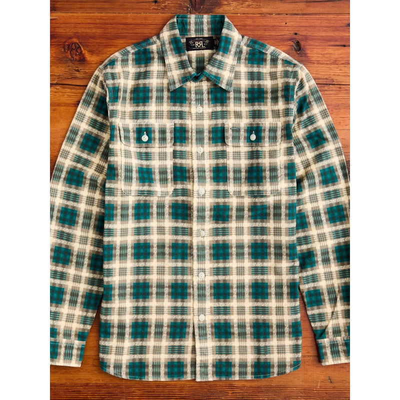 • This classic work shirt from RRL is built using a medium-weightprintedchamois fabric in a classic button-down design. Equipped with two utility pockets at the chest and pointed collar, this shirt is constructed with vintage detailing reminiscent of early 1900s shirting.