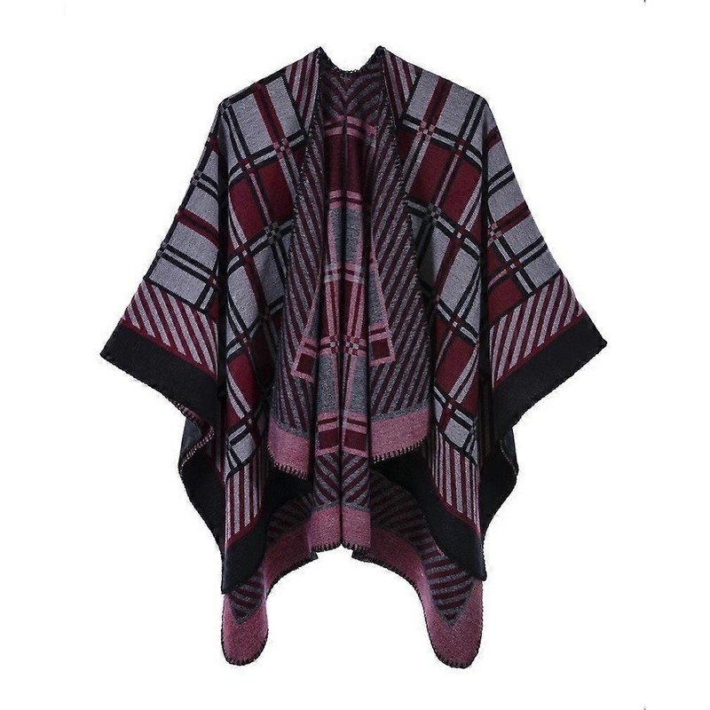Plaid Shawl Wrap Open Front Poncho Cashmere Feel Cape for Women | Fruugo SG