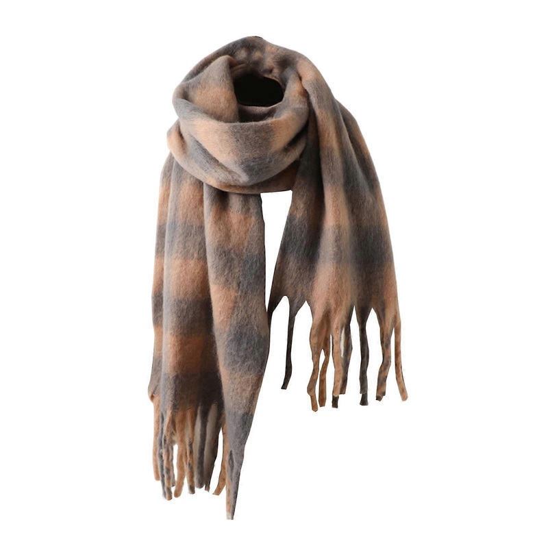 Description Features: Consist of imitation pashm component, soft and comfortable, providing a warm feeling; Fashionable grids pattern, stylish yet personality. Coffee color scheme, combining warmth and fashion; Light weight component, suitable for wearing