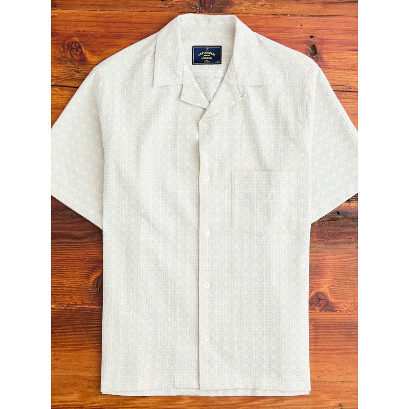 Portuguese Tile Button-Up Shirt in Blue Beige