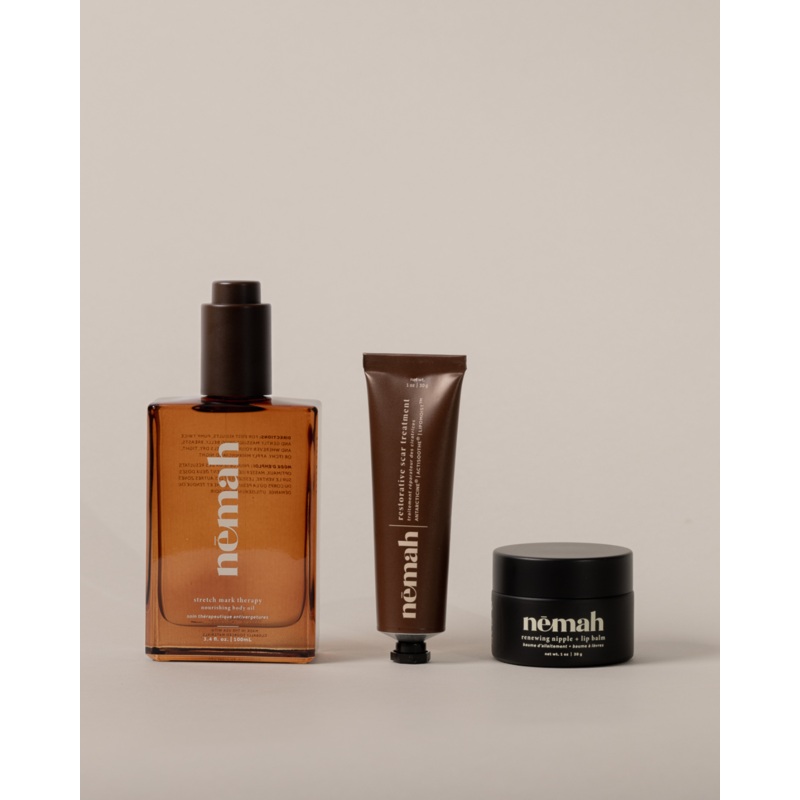 This powerful trio works together to support your postpartum recovery. Belly Oil, Scar Treatment, & Nipple Balm, help heal during the weeks & months ahead.