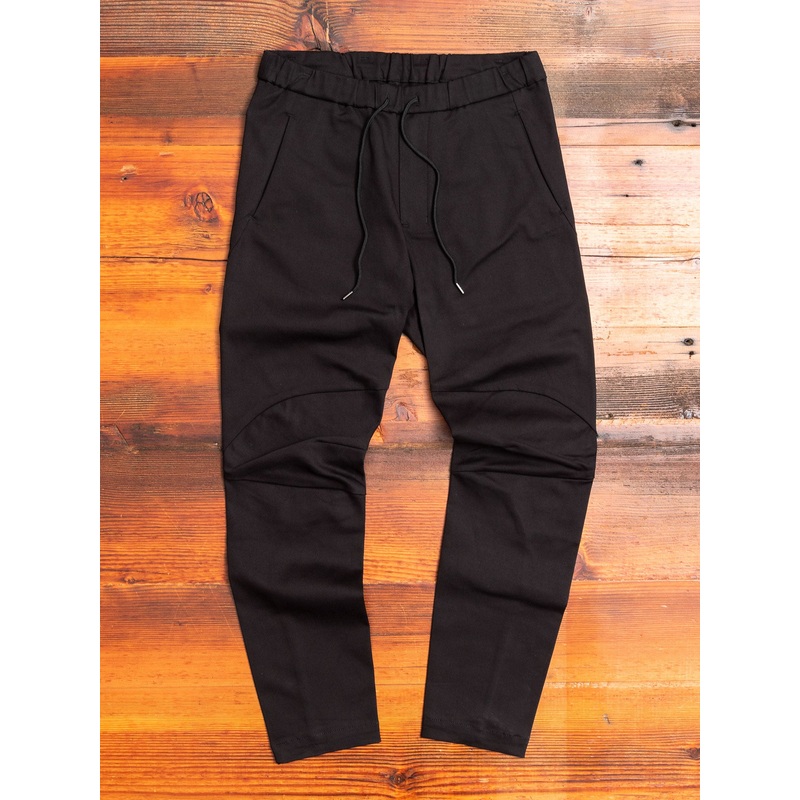 • TheRider Pants from Attachmentare constructed froma thick stretch fabric for superiormobility and functionality. Drawing inspiration from biker pants, the piece is designed with darts in the knee and legs to achieve a super slim silhouette. Constructed with a stretch waistband, draw cords, and a minimalist top block with welted front pockets.