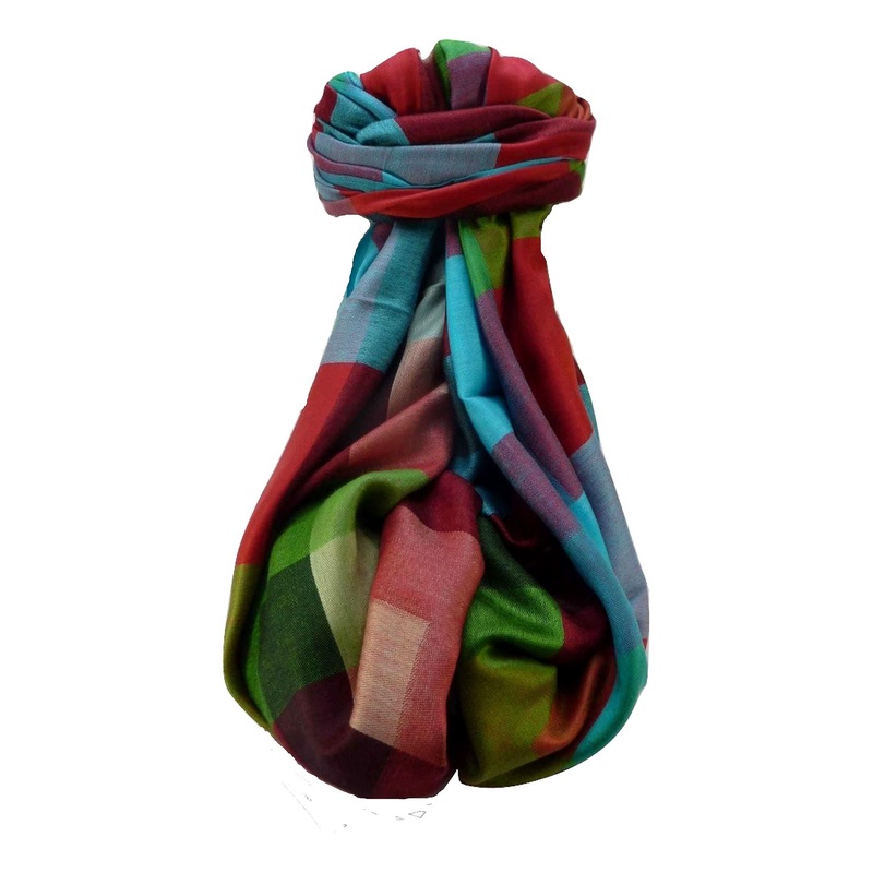 East meets west. Our sumptuous Pondicherry silk stole reflects the very strong French influence in the city, especially in the old quarters where artisans using the traditional weaving skills thrive. The towns Rues and Boulevards are lined with Mediterranean style houses and bakeries, although the city also remains essentially Indian. Pondicherry was ruled by France until 1954 and has a unique and intriguing mix of Franco-Indian culture, which is reflected in the design, and traditional colours of this elegant stole. Each stole has a complementary mix of colours creating an attractive unique geometric pattern.