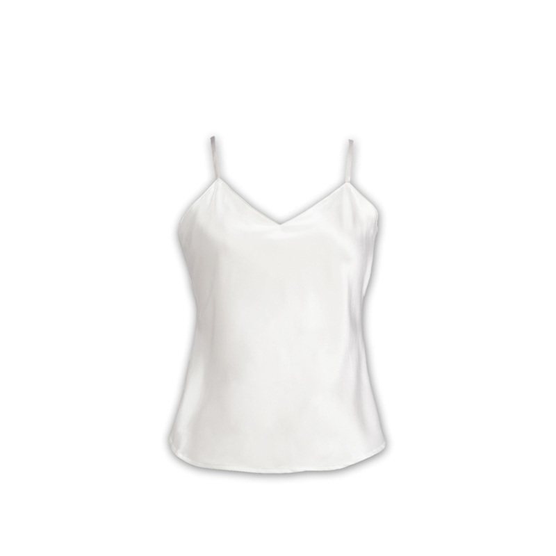 Proper Dress Code CamiStretch silk satin. 95% silk 5% lycra. Adjustable straps. Pairs best withProper Dress Code Blouse in Ivory. Dry clean only.