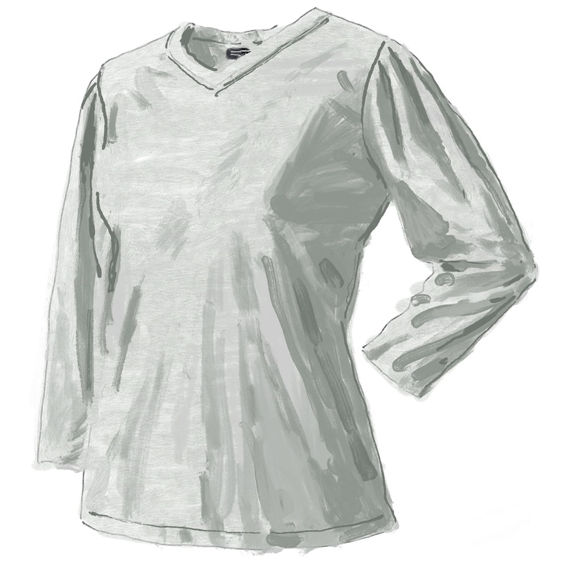 Puff Sleeve Knit Top (No. 6944). Gathered puff shoulder. length sleeve. Perfectly flattering high V-neck. Exceedingly comfortable cotton interlock fabric. Imported.