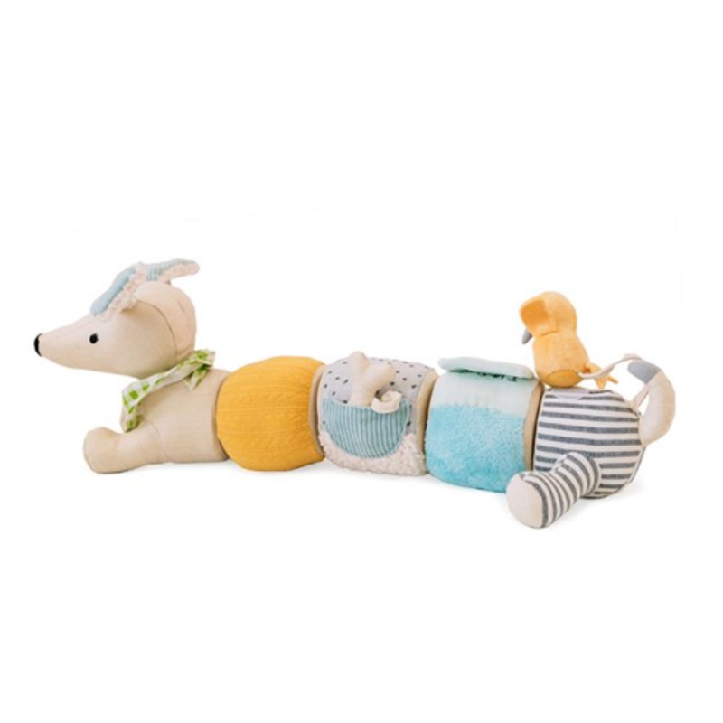 Our Pull Apart Pup is the perfect puppy pal for your little one. Sweet graphics and lots of textile details will delight your child with its tactile feel and fun activities. 5 pieces stick together and pull apart easily, and the littles can experiment with different configurations. Tons of fun from head to tail!