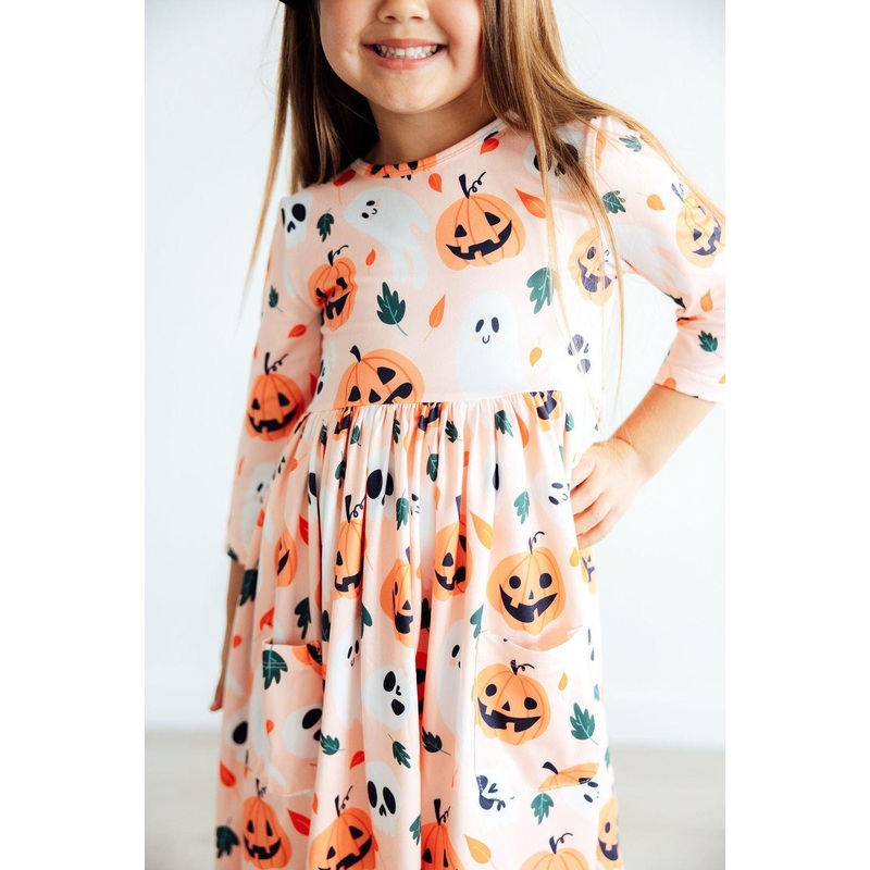 Pumpkin Peekaboo 3/4 Sleeve Pocket Twirl Dress