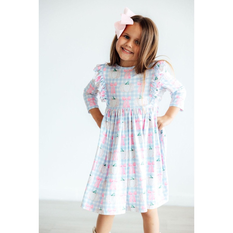 Pumpkin Picnic 3/4 Sleeve Ruffle Twirl Dress