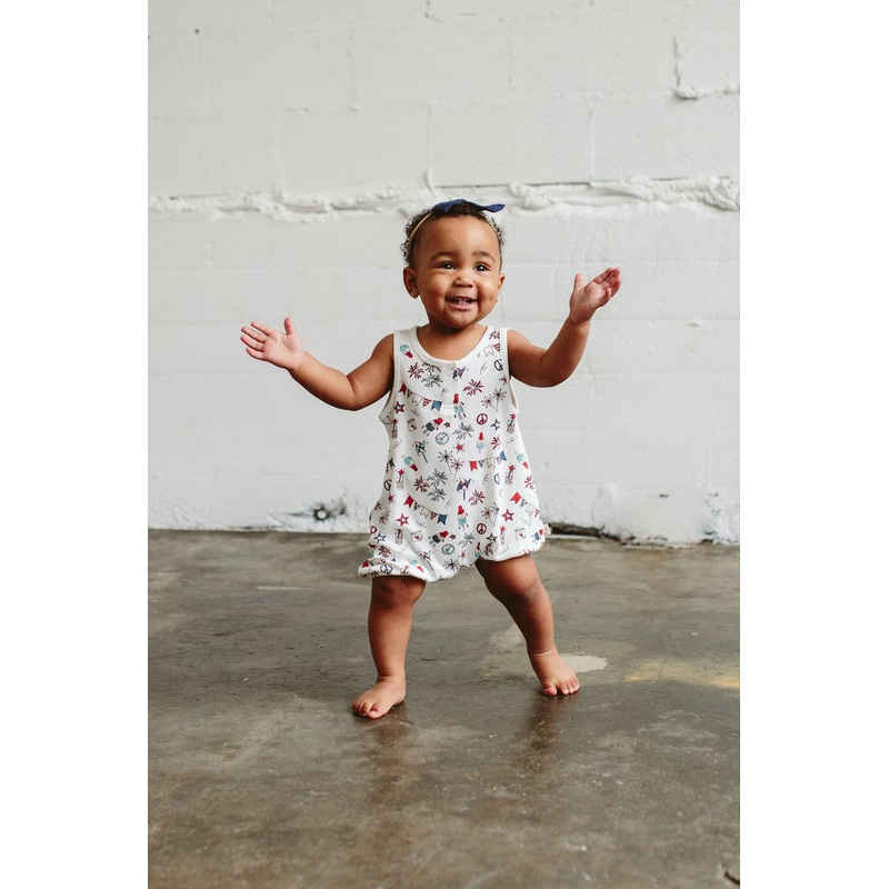 Perfect for warm weather, playdates, and all the moments along the wayFeatures:Quick change bottom snaps so that diaper changes don't slow them down.Luxuriously soft & built for hand me downs.Material: 70% bamboo viscose, 30% organic cottonCare Instruction