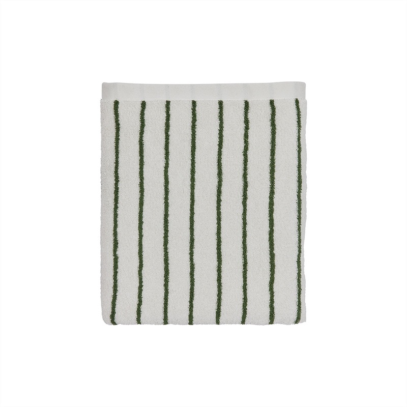 The Raita Towel in Offwhite and Green is made of organic cotton terry and is just what you need after a relaxing shower.