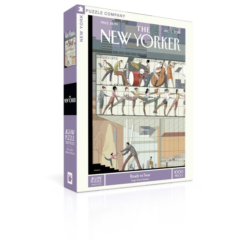 Step into a world of art, music, and heartfelt connection with Ready To Soar, a 1000 piece jigsaw puzzle featuring the captivating December 2023 cover of The New Yorker. Set against the iconic backdrop of New York City and the renowned Juilliard School, th