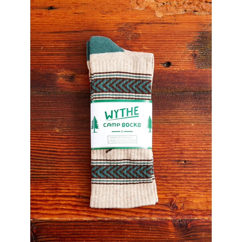 DetailsSizingBrand InfoWythe's Recycled Cotton Camp Socks are crafted from eco-friendly recycled cotton yarn sourced from a US-based textile mill and custom-woven in North Carolina. These socks showcase a variety of decorative jacquard weaves, offering bot