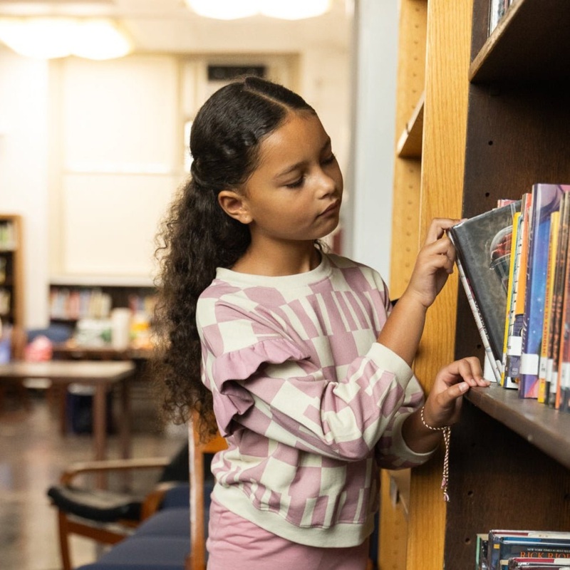 A cozy classic with a twist literally. This pink block sweatshirt features playful ruffle details at the shoulders and a bold geometric print thats as unique as she is. Made from recycled and organic cotton, it’s soft, warm, and gentle on the planet. Style it with the matching joggers for an easy, elevated set.