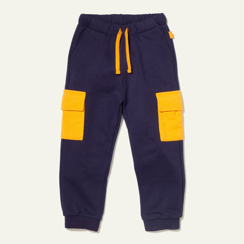 The navy Cotton Pocket Kid Joggers are designed with a ribbed adjustable waist, two contrast side pockets and drawstring elements. This unisex winter must-have is effortlessly comfortable. Pair it with our matching sweatshirts. For each purchase, 1% of the