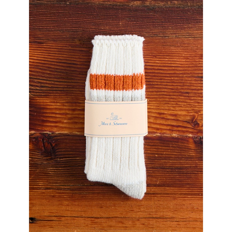DetailsSizingBrand InfoMade from eco-friendly recycled wool, these socks from Merz b. Schanen feature a classic knit design inspired by vintage styles. Made at a standard boot-crew length, these socks are knit with a wide rib and contrast bold striping at