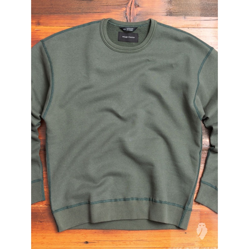 DetailsSizingBrand InfoThis sweater from wings + horns is crafted using a heavyweight Japanese cotton fleece with a soft vintage feel. Designed in a relaxed fit, the sweater features drop shoulders, a rib-bound collar, and signature flatlock stitching for