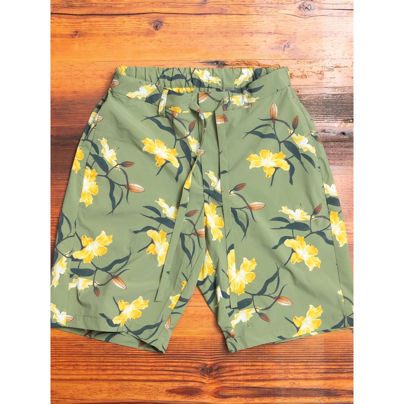 • Attachment’sRelaxed Shorts are constructed from a lightweight polyesterthat has great stretch and mobility. The easy-short design uses an elastic waist and has ample room through the legs, hitting just above the knee.