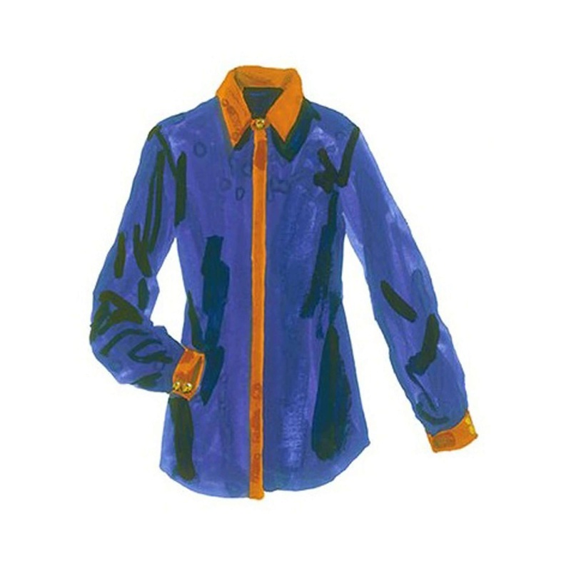 Remember Blouse (No. 4210). Proprietary silk-cotton blend. Copper poplin trim at collar, cuffs and placket. Shiny gold buttons at center front (eight) and cuffs (two). Imported.