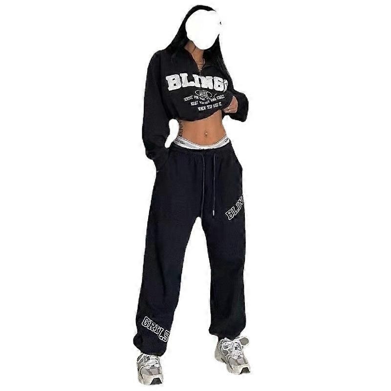 Description Retro sweater women's autumn sports hot girl fried street suit high waist casual pants two-piece set
