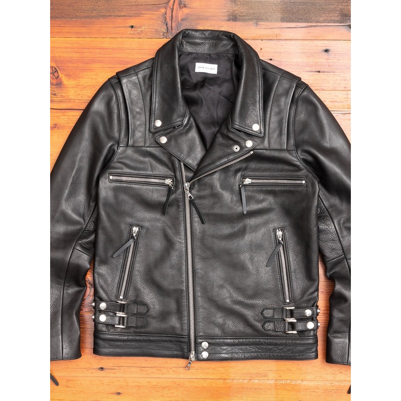 DetailsSizingBrand InfoThe Riders Jacket from John Elliott is a classic leather jacket style seen through the lens of Los Angeles. Built using a grainy luxe Italian cowhide, the leather jacket sports a soft oiled feel and comes designed in a sleek silhouet