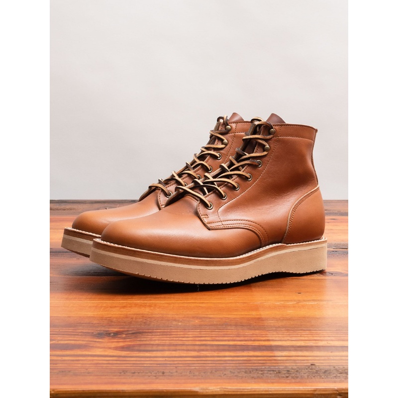 The Roam Boot from Truman Boot Co. is a classic style inspired by mid-century workwear. Built exclusively for Blue Owl, the boots are crafted using buttery latigo cowhide leather from the famed Horween leather tannery of Chicago. The boots receive their name from their lightweight Vibram 2021 wedge soles; a style designed specifically to reduce fatigue when walking long distances. Fused together using traditional Goodyear welt construction and finished with tonal stitching, leather insole, and brass hardware.