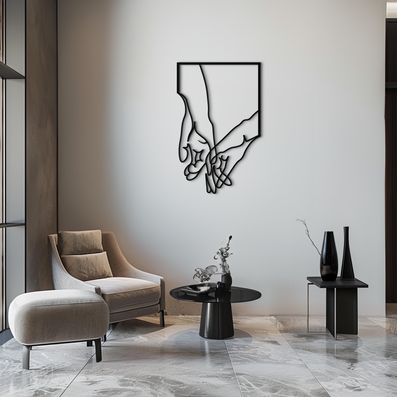 Romantic Hands Metal Wall Art – Minimalist Steel Wall Decor for Home & Bedroom – KAF039