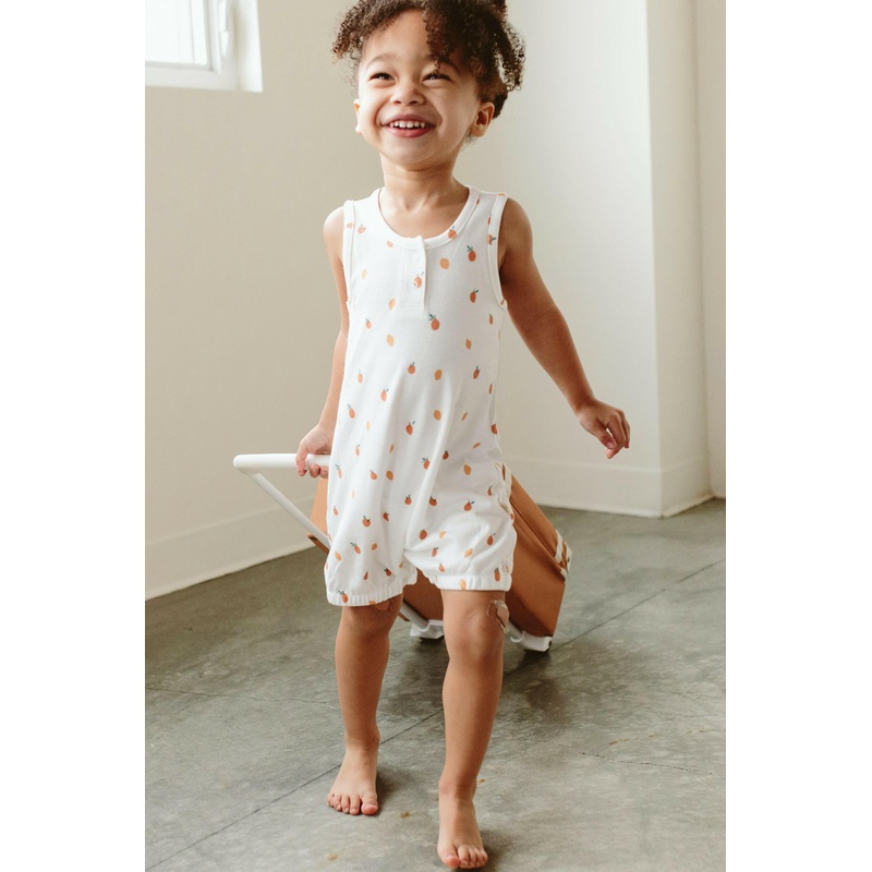 An organic cotton and viscose from bamboo daywear staple. Perfect for warm weather, playdates, and all your babes adventures along the way.Fabric:70% viscose from bamboo/30% organic cottonCare:Machine wash on low or delicate. Dry on gentle/low or line dry.