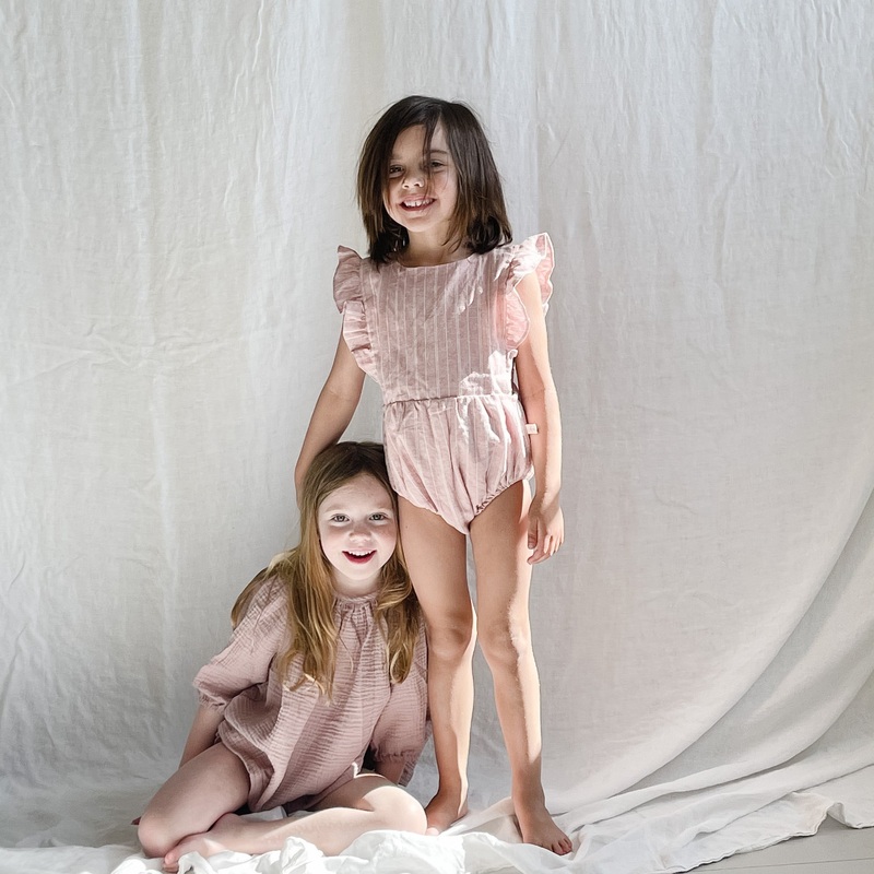Is there anything more feminine than a ruffle? Our ruffle sunsuit is as suited to a day at the park as it is to a tea party with the girls. Comfortable, beautiful, and made well enough to wear every day without worry. We love the sweet wooden button closure on back and classic liberty floral print. Throw on knee socks and a cozy cardigan in cooler temps. This is a consistent best seller. Don’t miss it! 100% cotton Machine Wash / Line Dry Item runs true to size 0-3 m -3/4 y