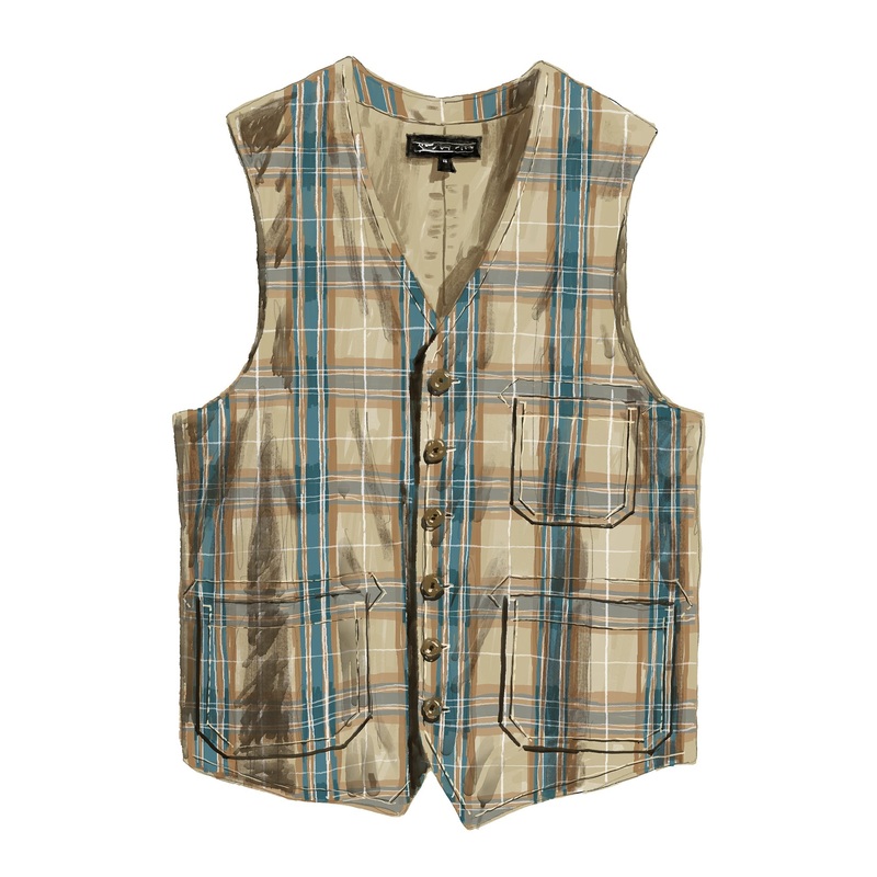 Rugged Madras Suit Vest (No. J8162). Your warm-weather vest in yarn dyed Madras poplin blend. Made for excellent durability and crisp hand-feel from a mid lightweight cotton/poly blend. Faux horn buttons. Back belt with adjustable metal buckle. Poly lining. Imported.