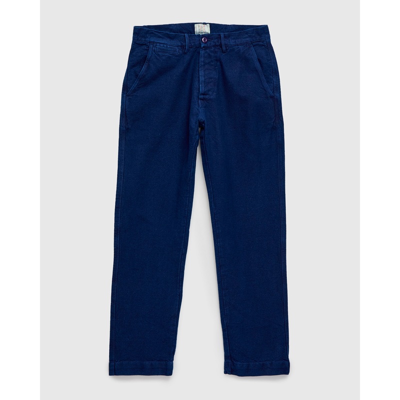 Wythe’s Flat Front Chinos feature a custom cotton-linen canvas fabric cut in a true straight leg fit. Inspired by vintage work trousers, the pants feature a flat front slant pocket design with adjustable back cinching. Wythe’s plain weave canvas fabric is custom developed with a breathable medium-weight weave and heavy surface texturing. The pants are cut in a classic straight leg with a medium-rise, and slight taper down the leg.