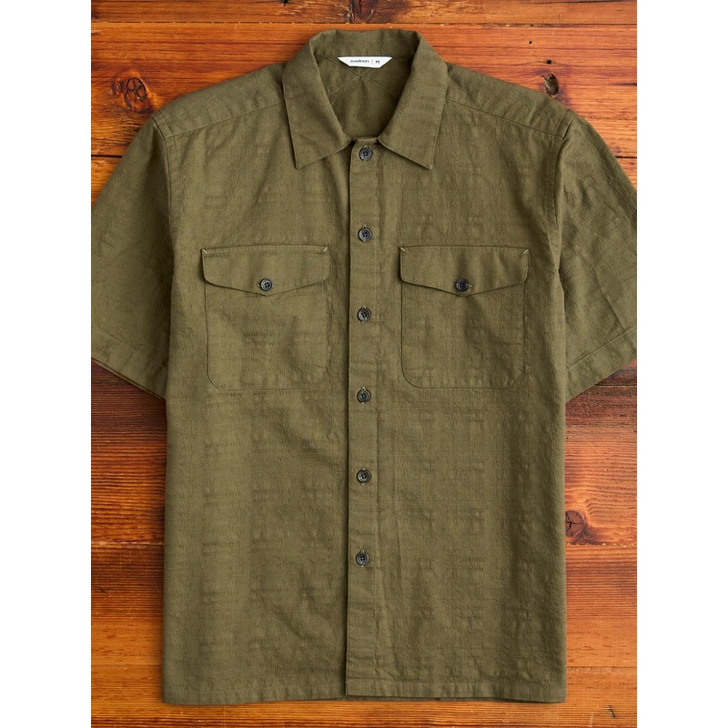 DetailsSizingBrand InformationThe Safari Shirt is a hefty short sleeve shirt reminiscent of vintage outdoor shirts. This iteration of the shirt is built using acustom-developed textured barkcloth fabric. The shirt featurescustom buttons, dual flap chest po