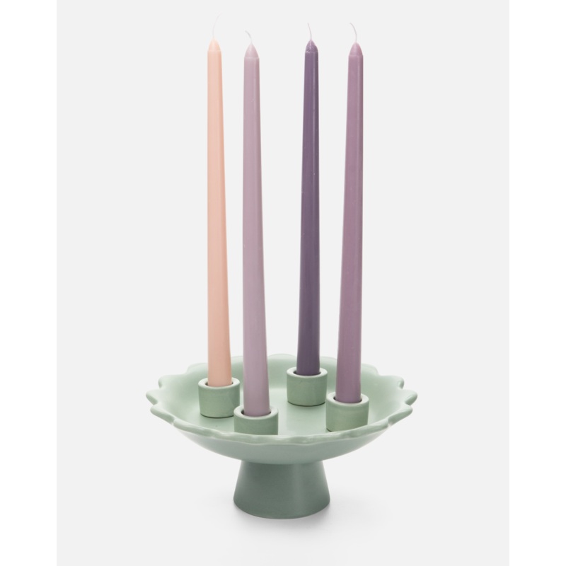 The scalloped Advent Wreath is a modern take on the traditional Advent Wreath. It is made of ceramic. Pair with our ombre soy Advent candles.